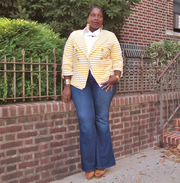 Last but not least, I went for a casual Friday office look with my yellow striped blazer and wide leg jeans.