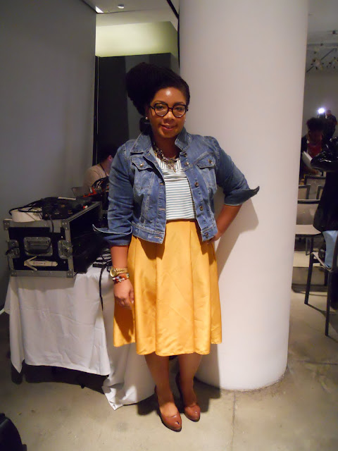 Love all the stylish women that you snapped pictures of, especially Nikia of Chi Town Fashionista (yellow skirt, denim jacket, and striped tee)