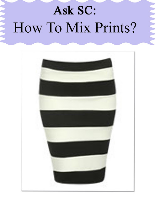 ” I recently purchased this skirt (http://www.wetseal.com/catalog/product.jsp?categoryId=739&productId=52032) from Wet Seal. I’m ready to pair it with a solid top and some colored pumps, but I was hoping you could help me out with some other outfit ideas. I am interested in dipping my toe into the world of pattern mixing, but I don’t know how. Thanks in advance.”