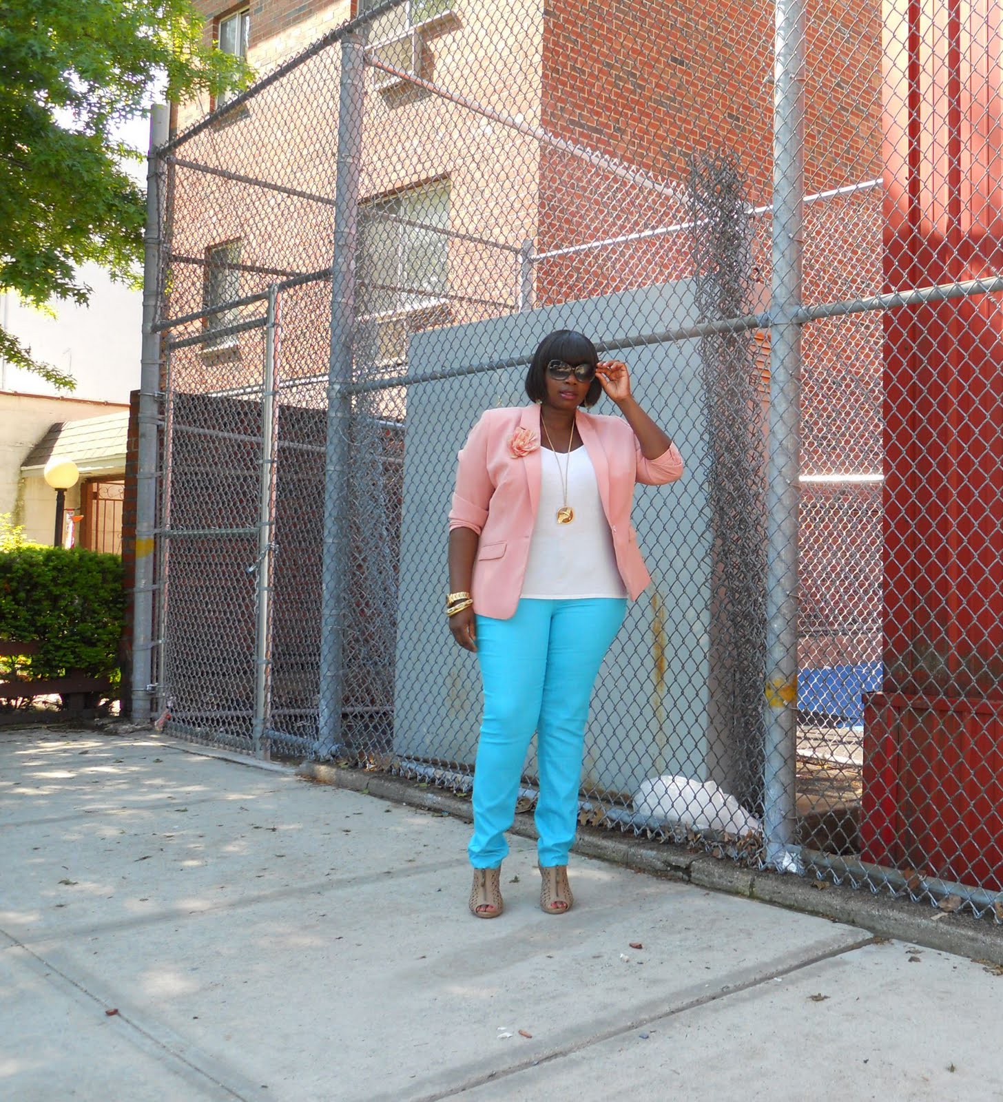 PERFECTION! I love the pastel color block! You remember the teal blazer I bought at Re/Dress? Now I want a pair of rose colored pants! lol