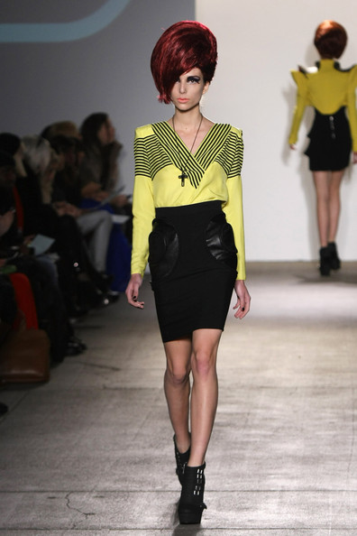 If you live for Lady Gaga and Nicki Minaj then you’ll love Geoffrey Mac. The edgy designer’s fall 2012 collection was filled with tough colorful leather jackets, flowy baby doll dresses with leather detailing, and wool coats with silk lining. You can checkout the rest of my review over at John Simon Daily