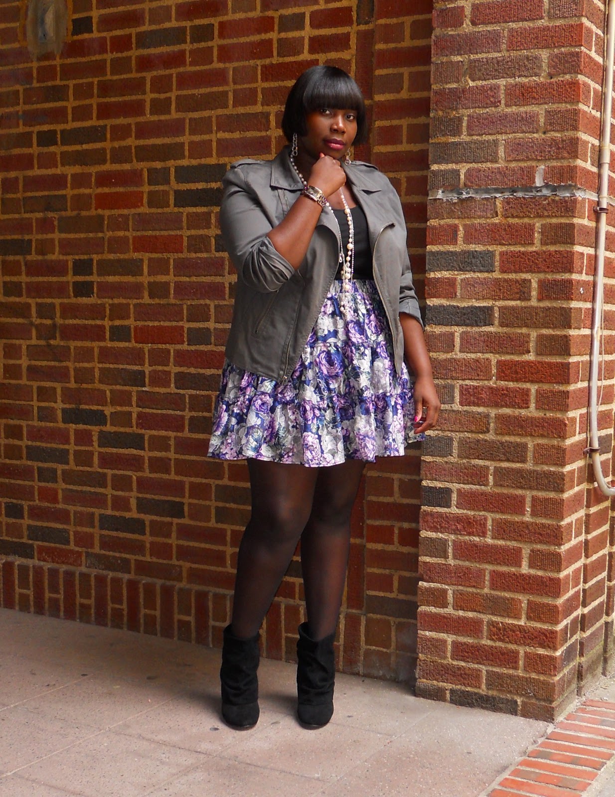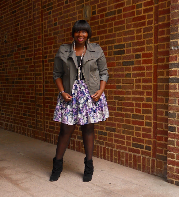 I really love this look, I caught myself digging into my floral skirts and tap shorts last week to layer with tights to bring some color into this winter! Love that jacket too, its fab!