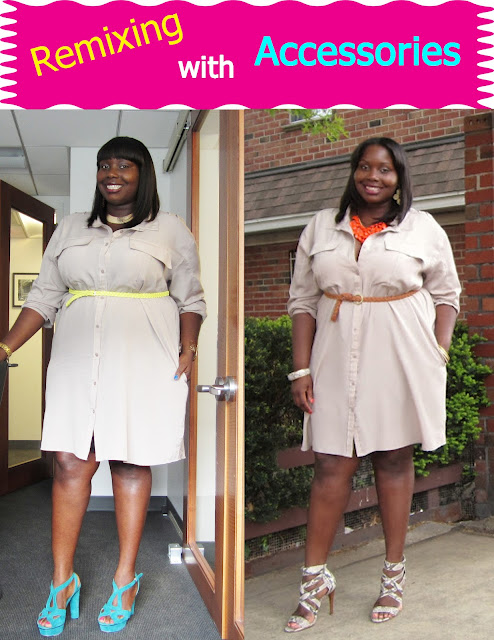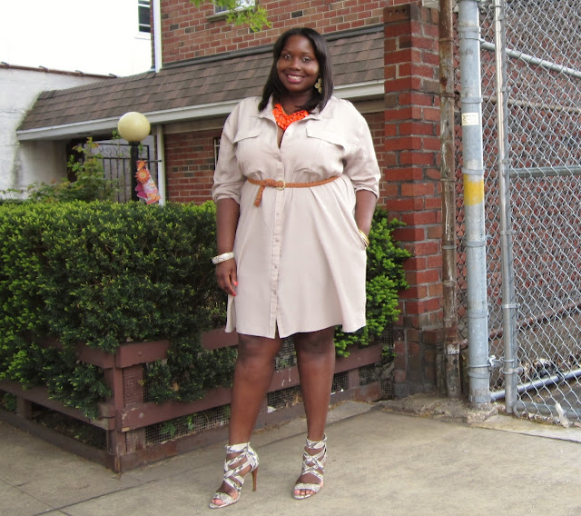 I am digging all the neon accessories that are on trend this season. I decided to utilize a few that I picked up and wear them with the neutral Calvin Klein shirt-dress that I showed you this week.