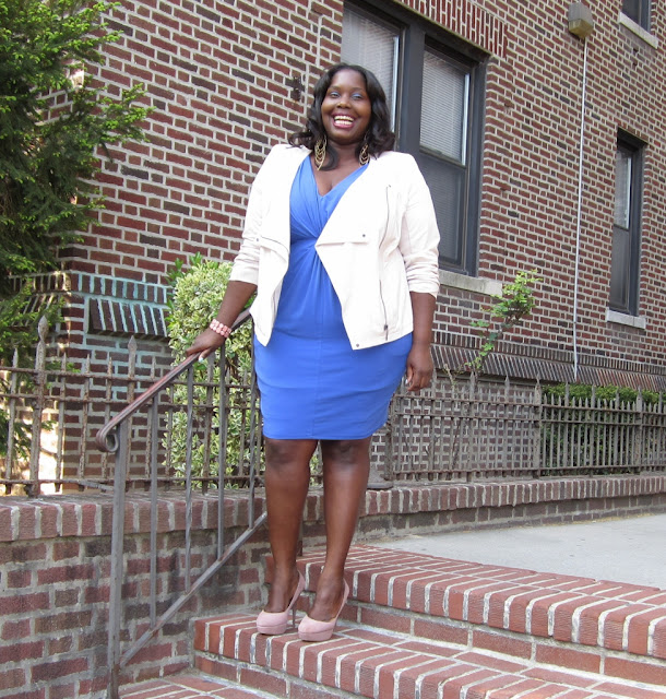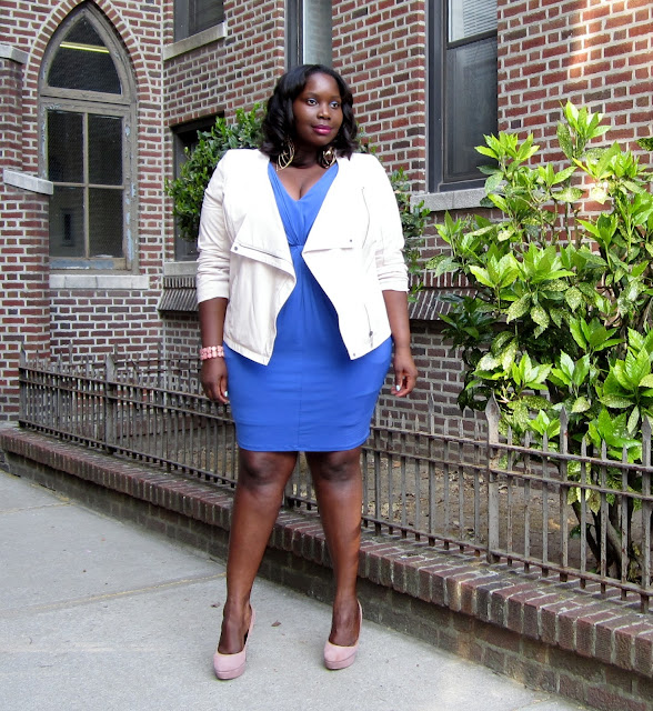 The white biker jacket is awesome! It adds some edge to your great dress! I too love Nordstrom Rack!!!
