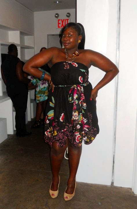 For the panel discussion and modeling contest I wore this floral print strapless dress from Fashion to Figure. I loved the colorful floral print and that the dress was shaped like a smock with a super long self tie. I broke out my LOGO Instant Chic necklace that was gifted to me by celeb stylist Lori Goldstein, a pair of heart shaped earrings from Forever 21, and bracelets from Ashley Stewart (gifted).