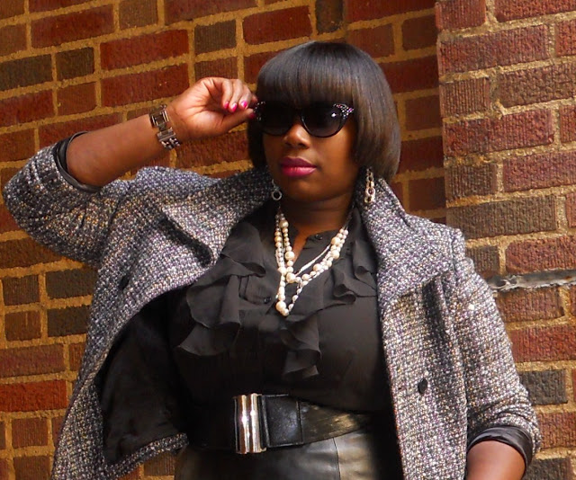 Very nice look!! You look, to me, like an African-American Anna Wintour! I love every piece especially the leather skirt!! I usually admire them from a distance since my unique shape dose not agree with the fit. However, you have inspired me to go back out in the retail jungle & try on some leather skirts (Thanks!!)! I hope I finally find a good fit & I hope it will last in my closet!